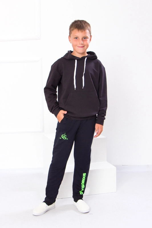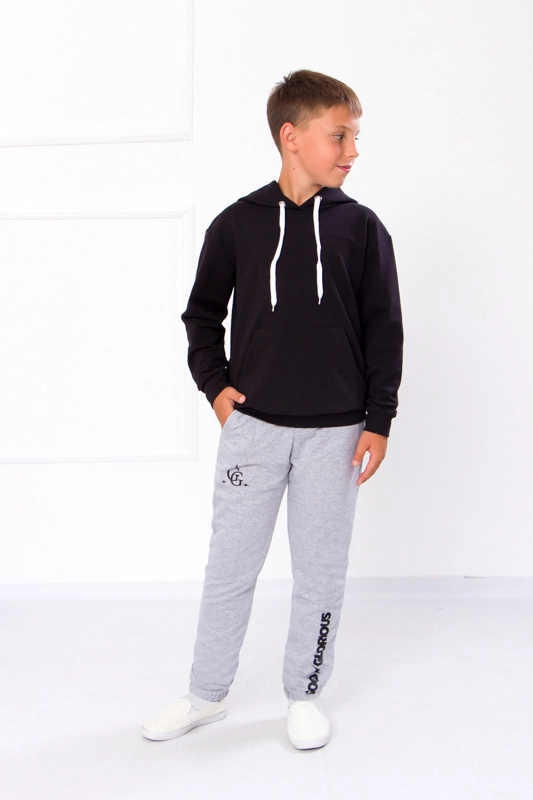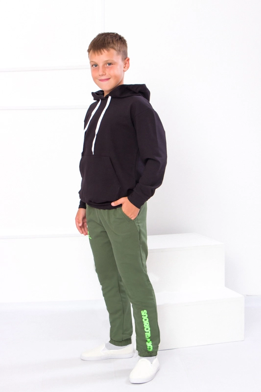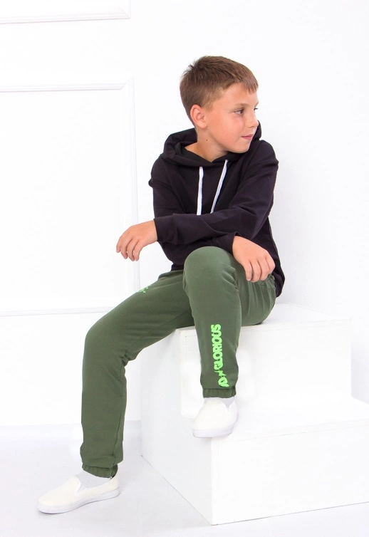 Модель виконана з полотна - двонитка. Трикотаж мало мнеться, відрізняється своїм повітрообміном. Пояс штанів та нижня частина на резинці. Штани доповнені кишенями для зручності. Модель прикрашена принтом. Спортивні штани відмінно підійдуть для занять фізкультурою, а також для активного відпочинку, поїздок на природу і для використання в якості домашнього одягу.