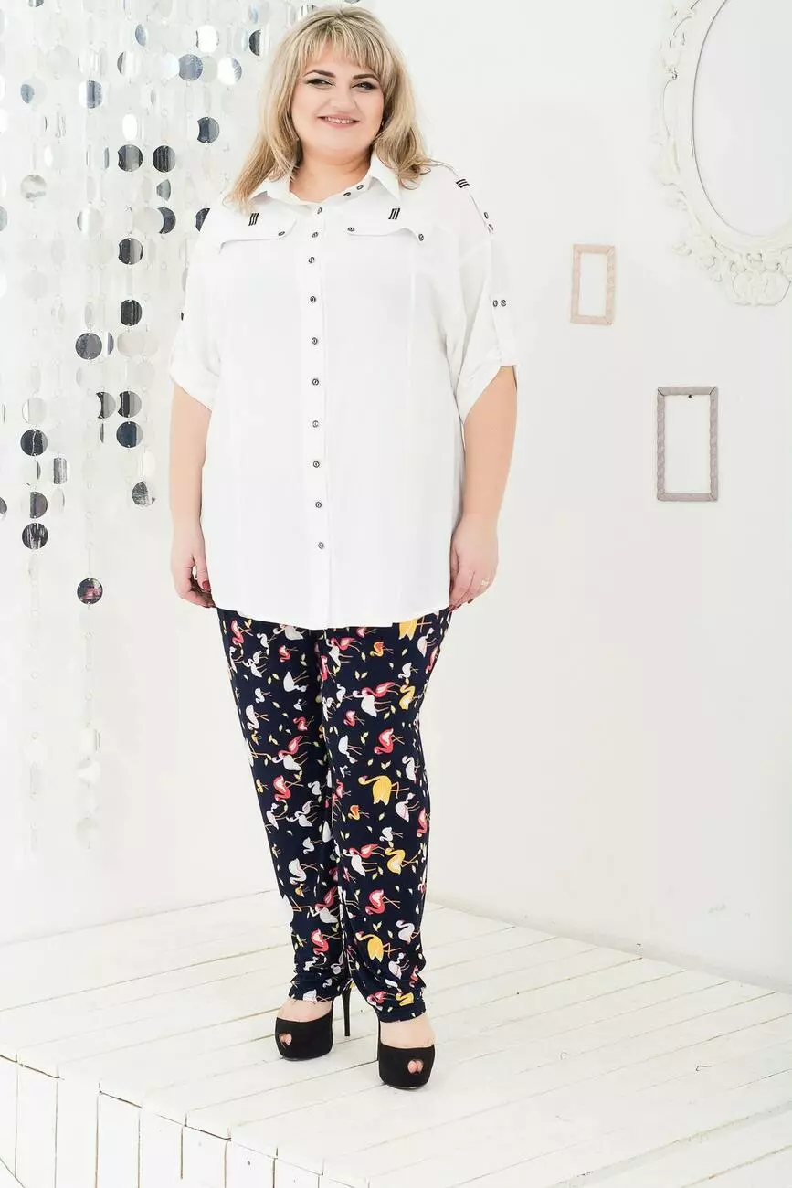 Тканина: масло-70% поліестер; 20% віскоза; 10% еластан. Штани виконані з тканини олія. Крій штанів прямий, без блискавки, пояс на резинці. По передній частині виробу закладені складки. Модель має дві функціональні кишені. Прання рекомендоване при температурі 30-40 градусів у делікатному режимі, прасування на одиницю або на двійку. Розміри :