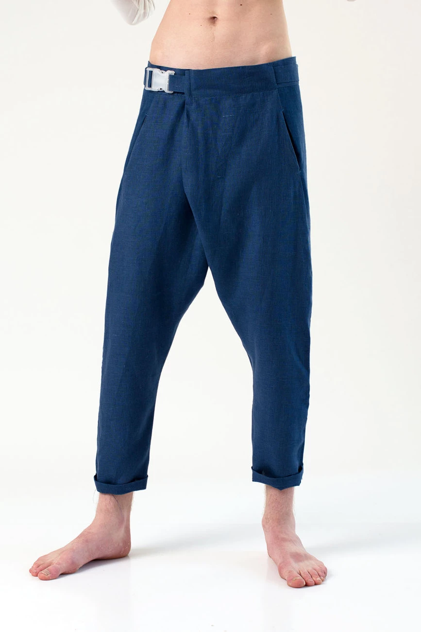 С карманами, унисекс. Состав: 100% лен. Размеры:S, M, L, XL.
