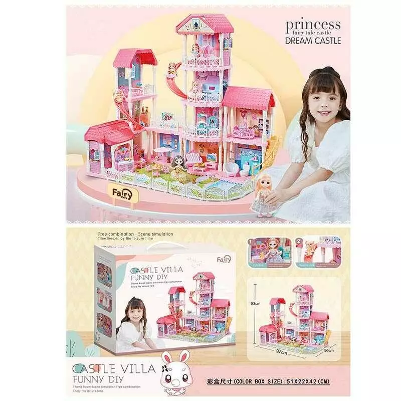Будиночок 7005 (2) 3 ляльки, гірка, меблі, посуд, аксесуари, в коробці