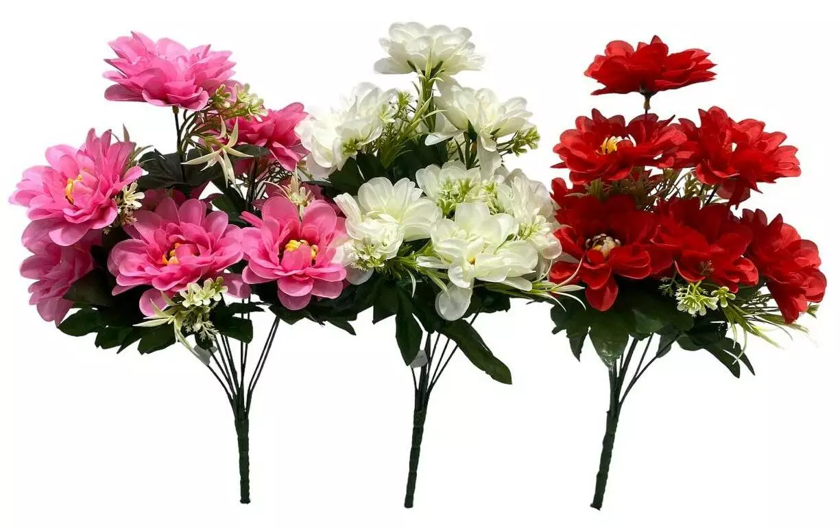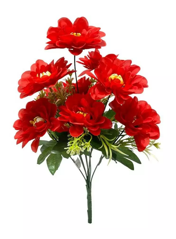 Букет штучний георгіна з атласу на 10 голів. Висота букета з