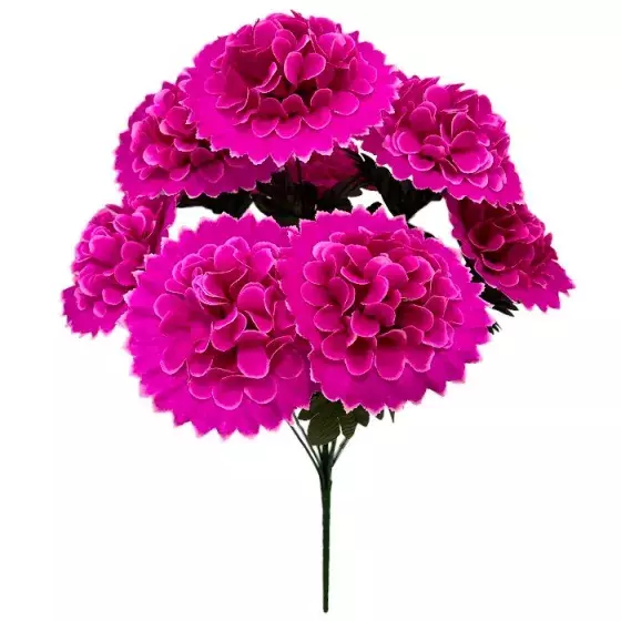 Штучний букет хризантеми з бавовни висотой 54 см, на 9 голів, розмір квітки 14 см. Потребує розпарювання. В прозорій фабричній упаковці зібрано 10 шт різного забарвлення.