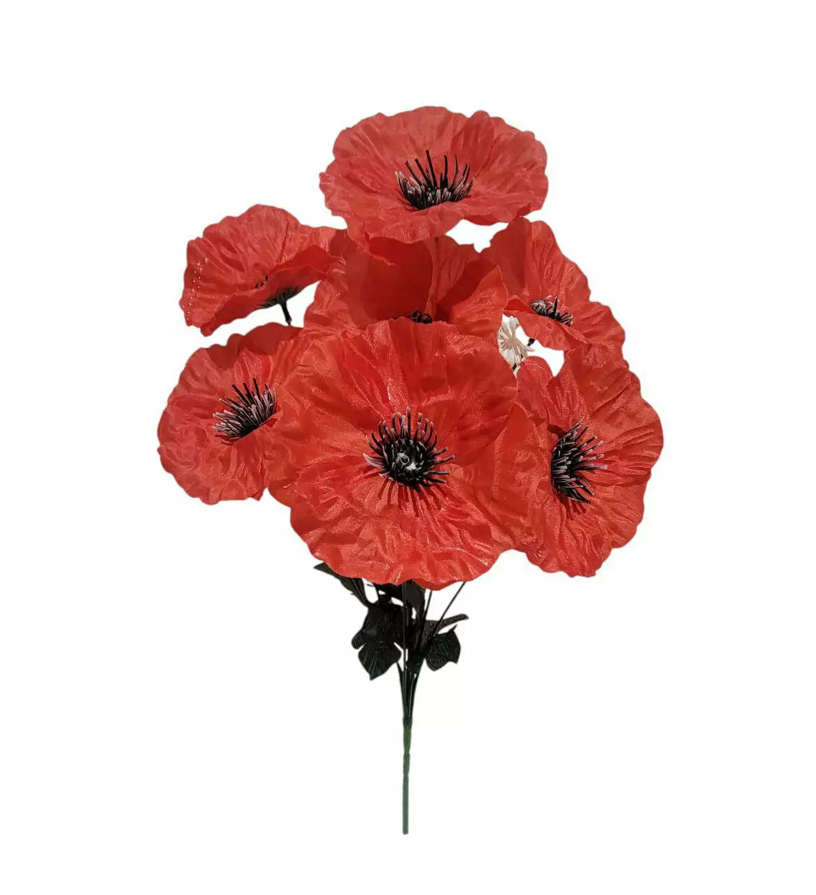 Букет штучний мак з шовку на 7 голів, висотой 40 см. В упаковці 50 шт червоного кольору.