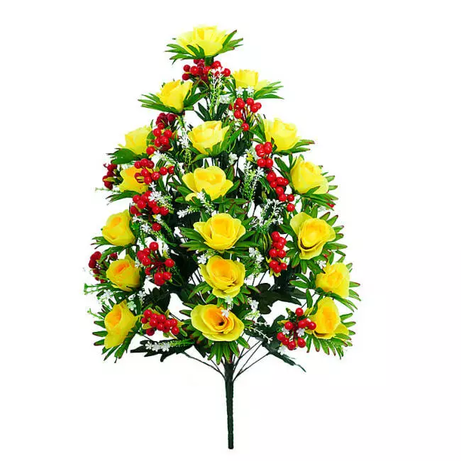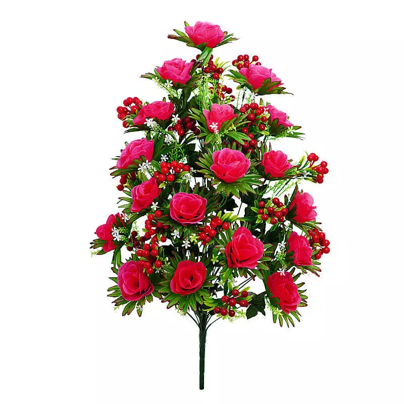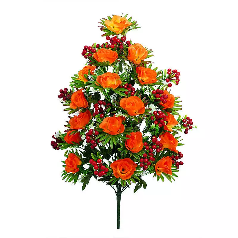 з 18 голів троянд і 18 гілочок ягід. Квіти троянди з шовку. Під