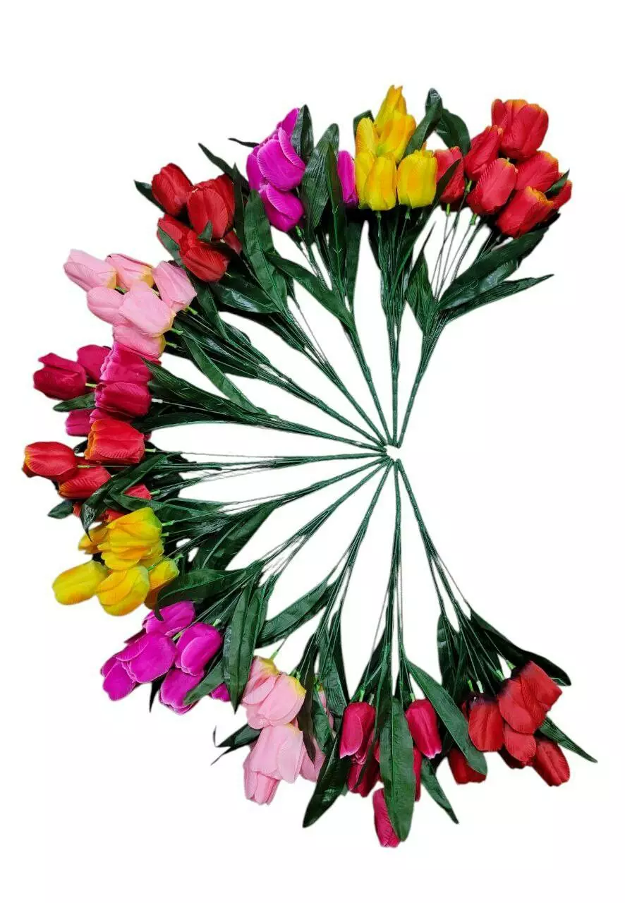 Букет тюльпанів з щільної бавовни на 9 голів висотой 47 см. В упаковці 12 шт різного забарвлення.