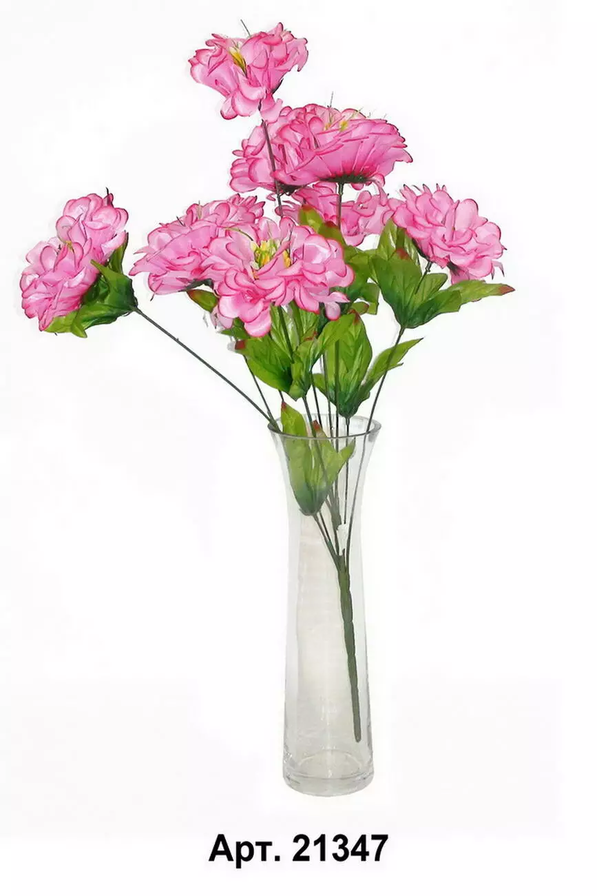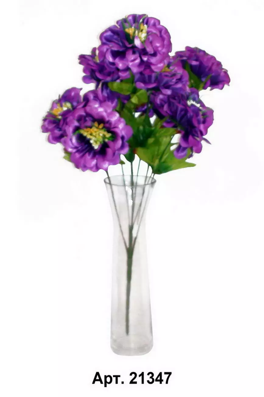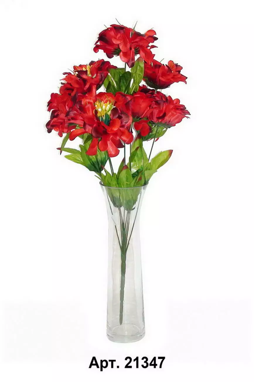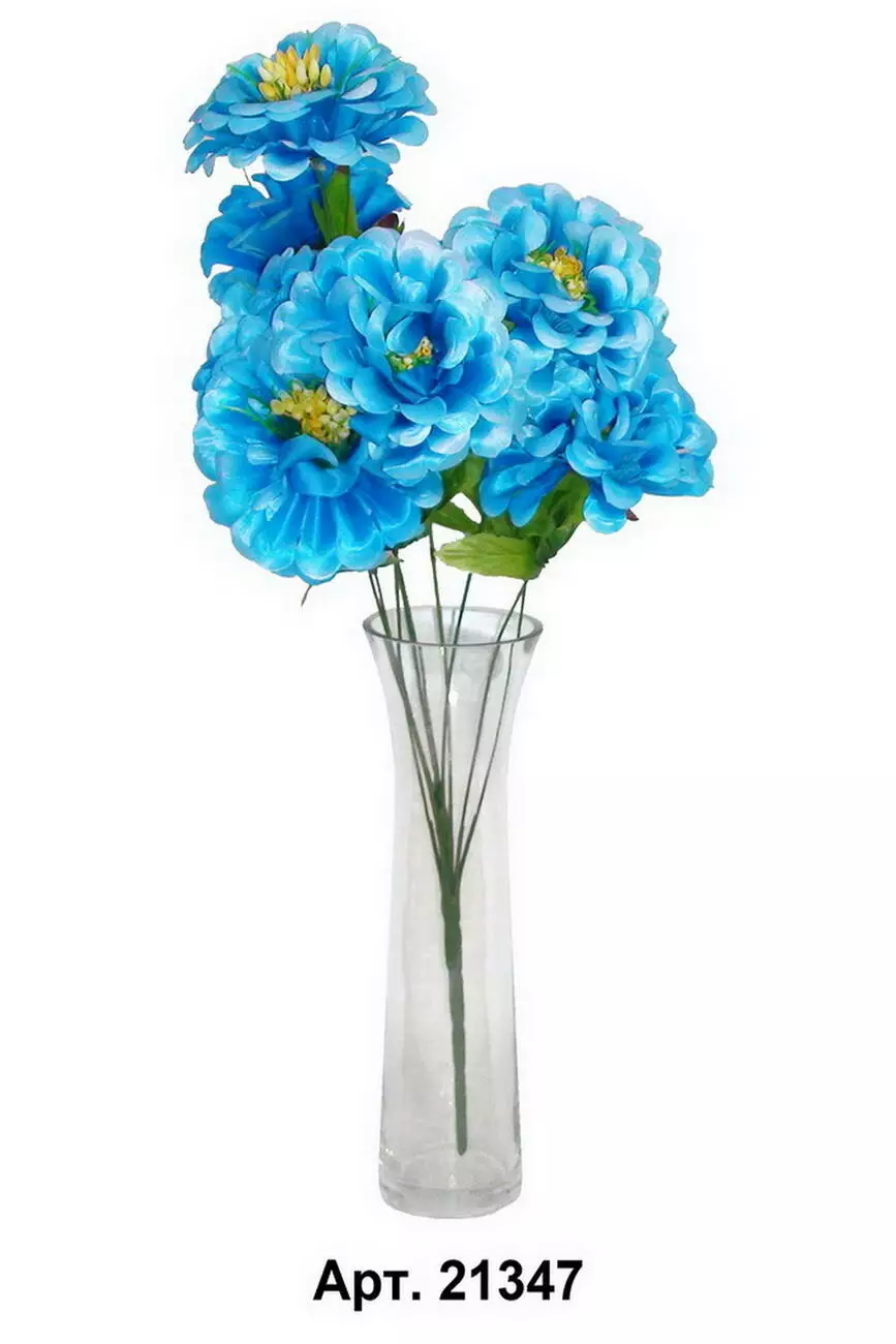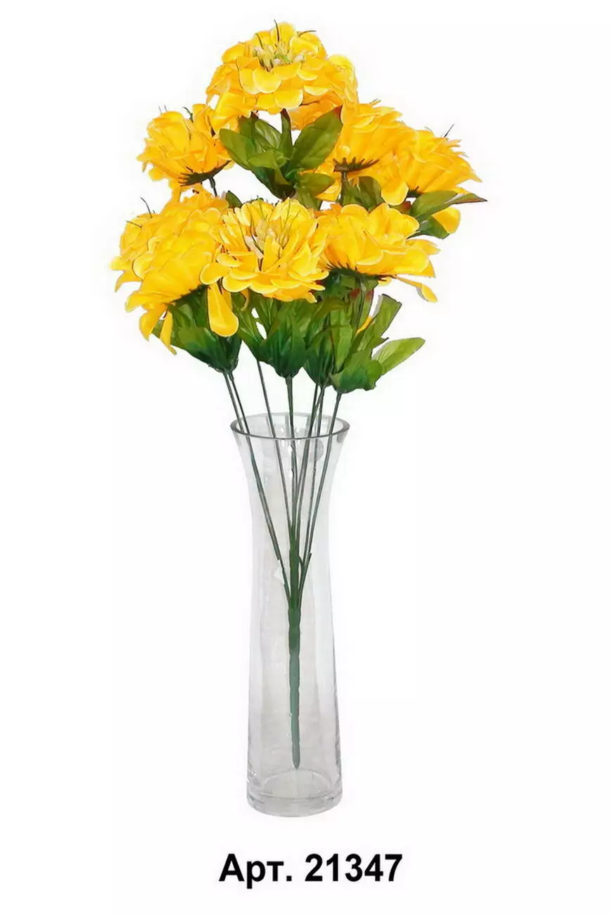 Штучний букет жоржини на 9 голів з шовку, довжина 57 см. У прозорій фабричній упаковці зібрано 10 шт різного забарвлення. Вимагає розпарювання.