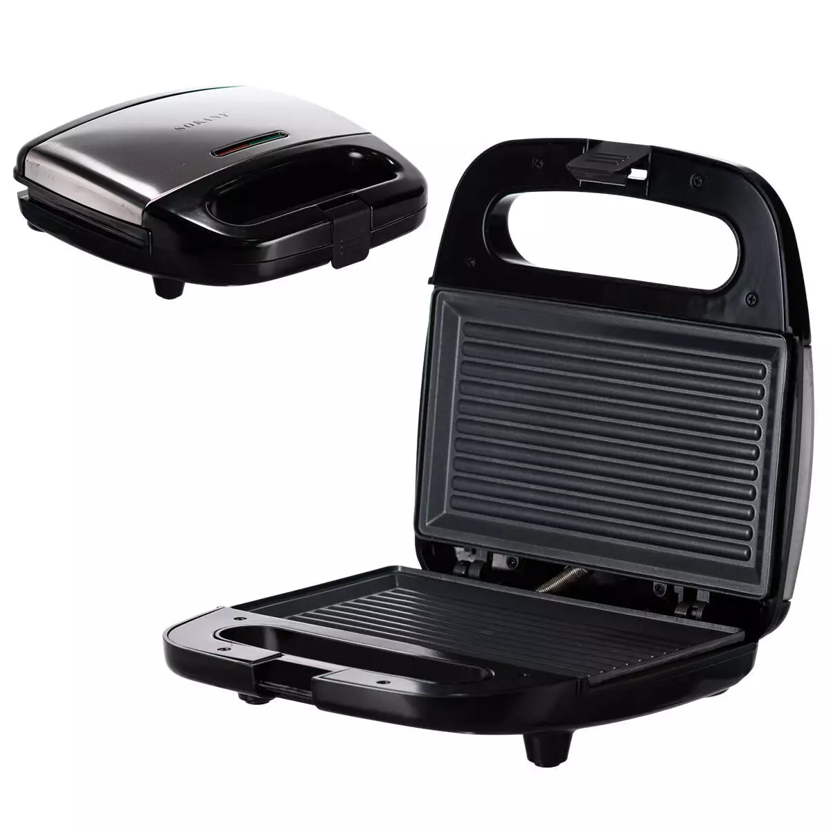 Бутербродниця оснащена пластинами з антипригарним покриттям, що запобігає прилипанню продуктів до поверхні та полегшує очищення після використання. Нижня частина приладу має кріплення для намотування шнура.