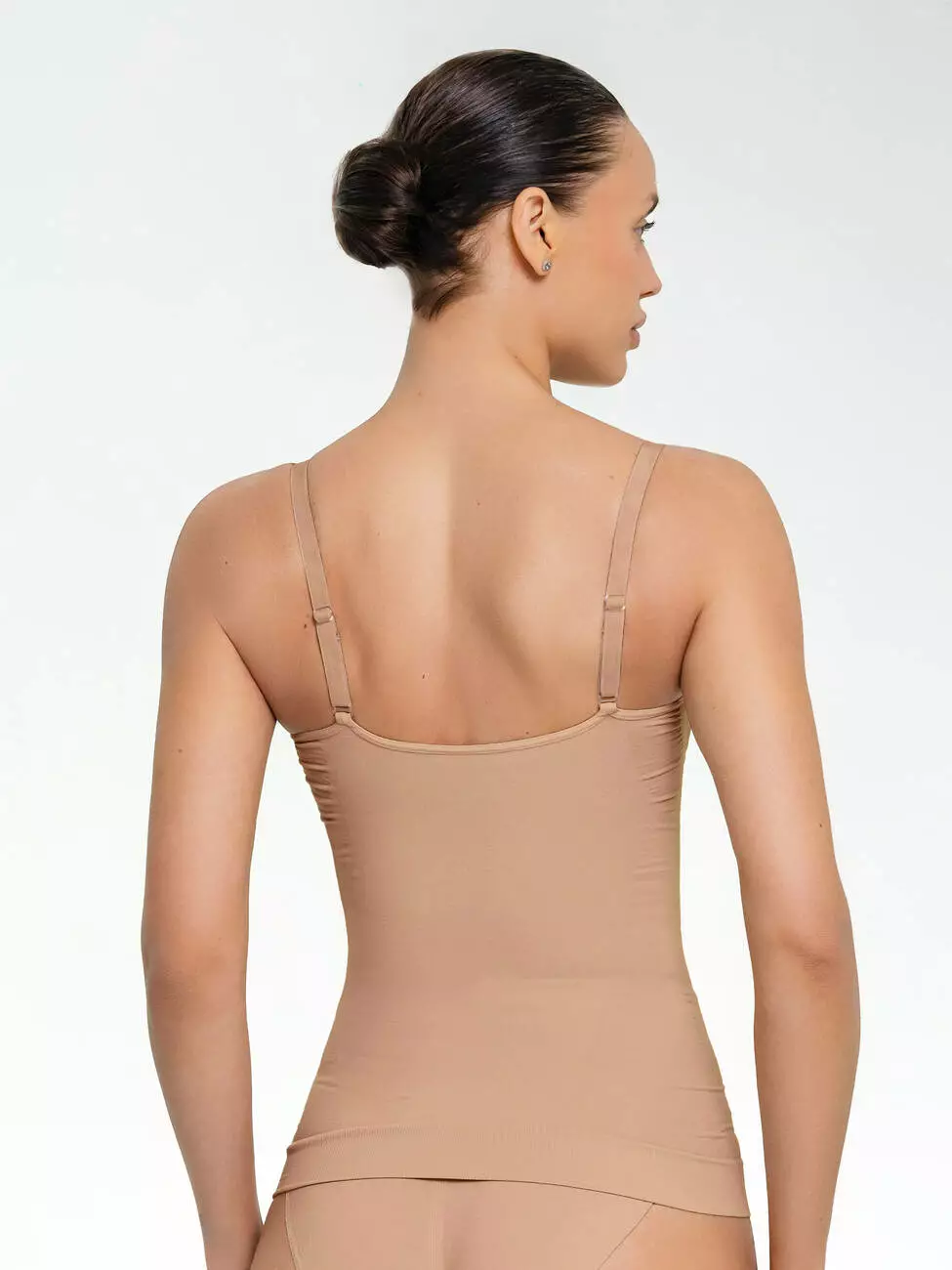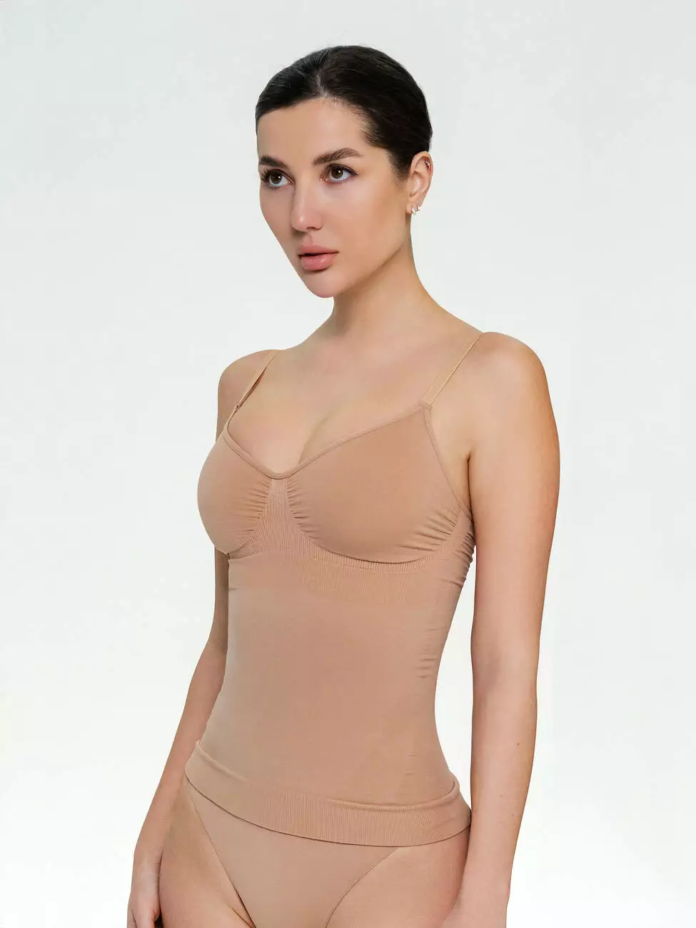 Жіноча майка Shapewear з еластичної тканини забезпечує делікатний коригуючий ефект у зоні живота та талії, формуючи стрункий силует. Безшовна технологія гарантує комфортну посадку та непомітність під одягом. Тонкі регульовані бретелі й V-подібний виріз роблять модель універсальною для повсякденного гардероба.