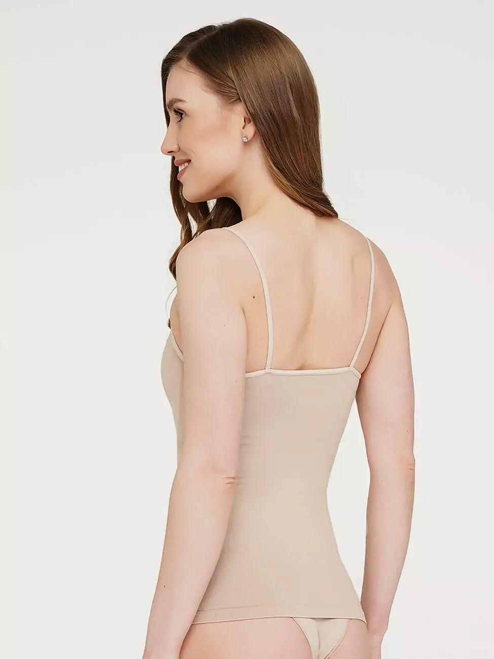 Жіноча безшовна майка з м’якої мікрофібри — комфортна база для щоденного гардероба. Модель без бічних швів із круглим вирізом забезпечує акуратну посадку та максимальну зручність. Еластичні бретелі не розтягуються, а тканина щільно облягає фігуру, створюючи легкий коригуючий ефект. Ідеально поєднується з будь-яким одягом.
