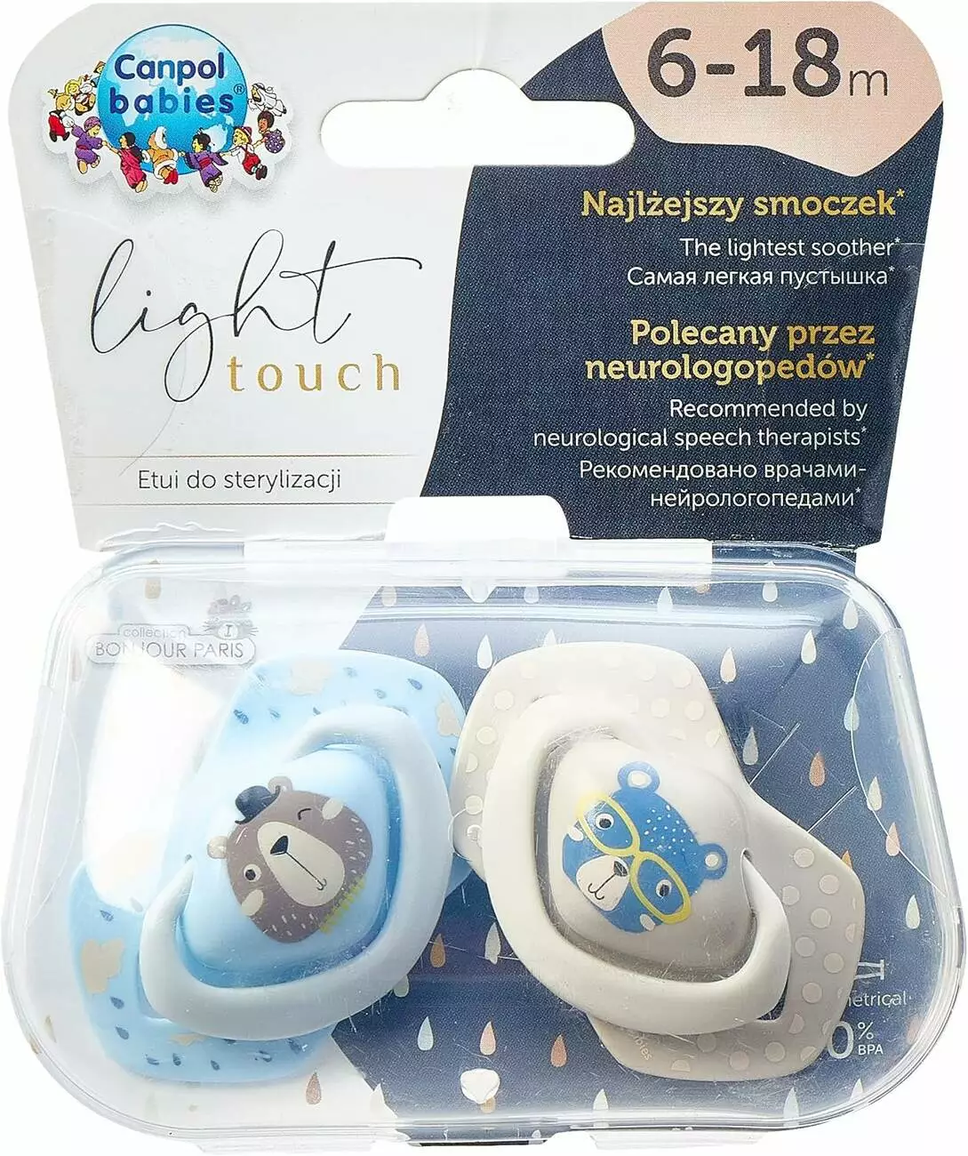 Canpol babies Пустушка силіконова симетрична 6-18 міс BONJOUR PARIS 2 шт. - блакитна 22/648_blu CANPOL