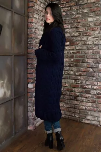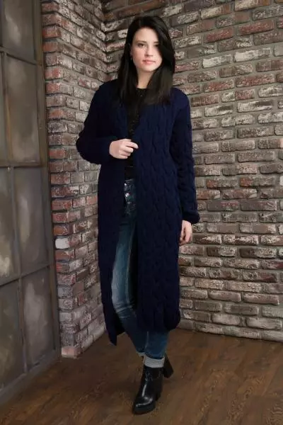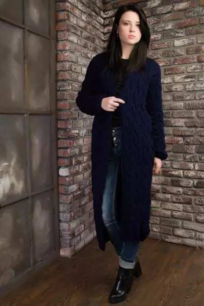 в тёмно-синей расцветке. Вязаный кардиган – прекрасный вариант для