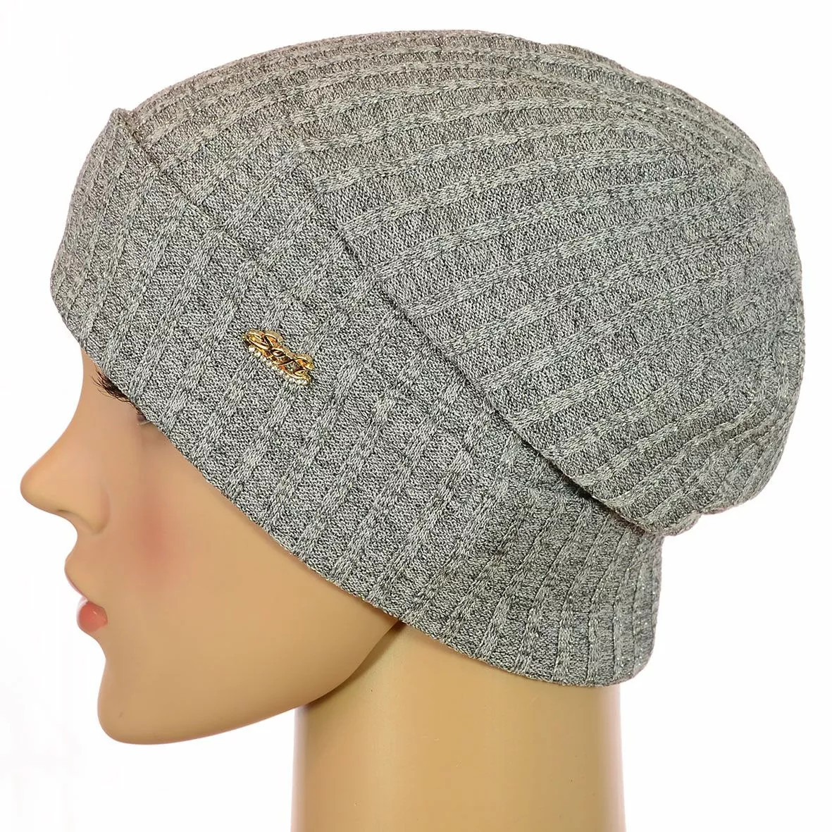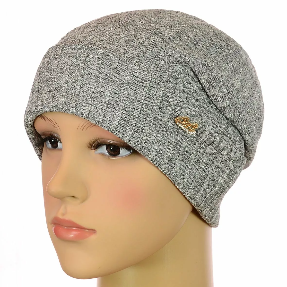 Двухслойная трикотажная шапка с отворотом и закрепом сзади,