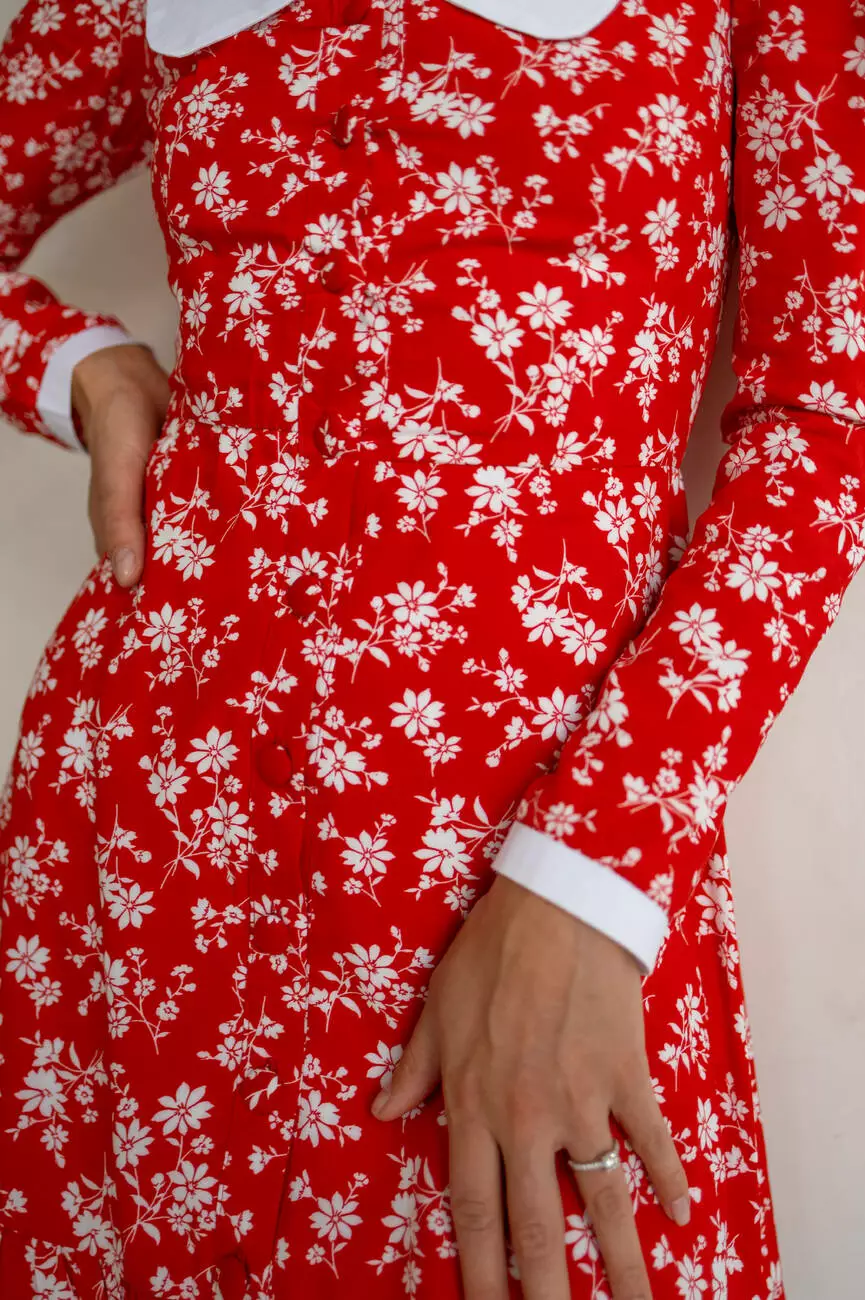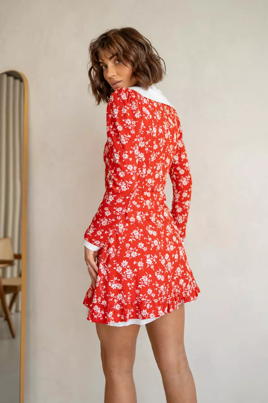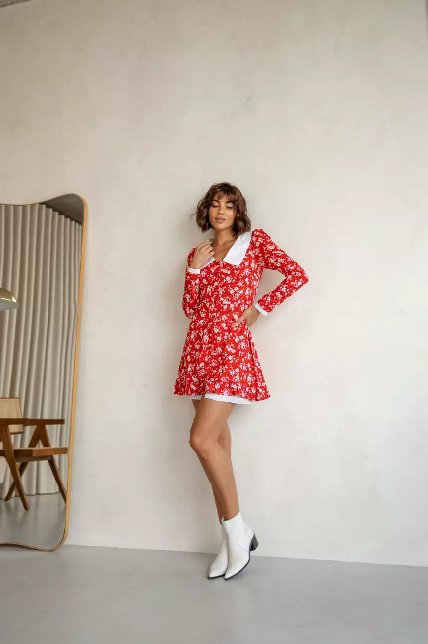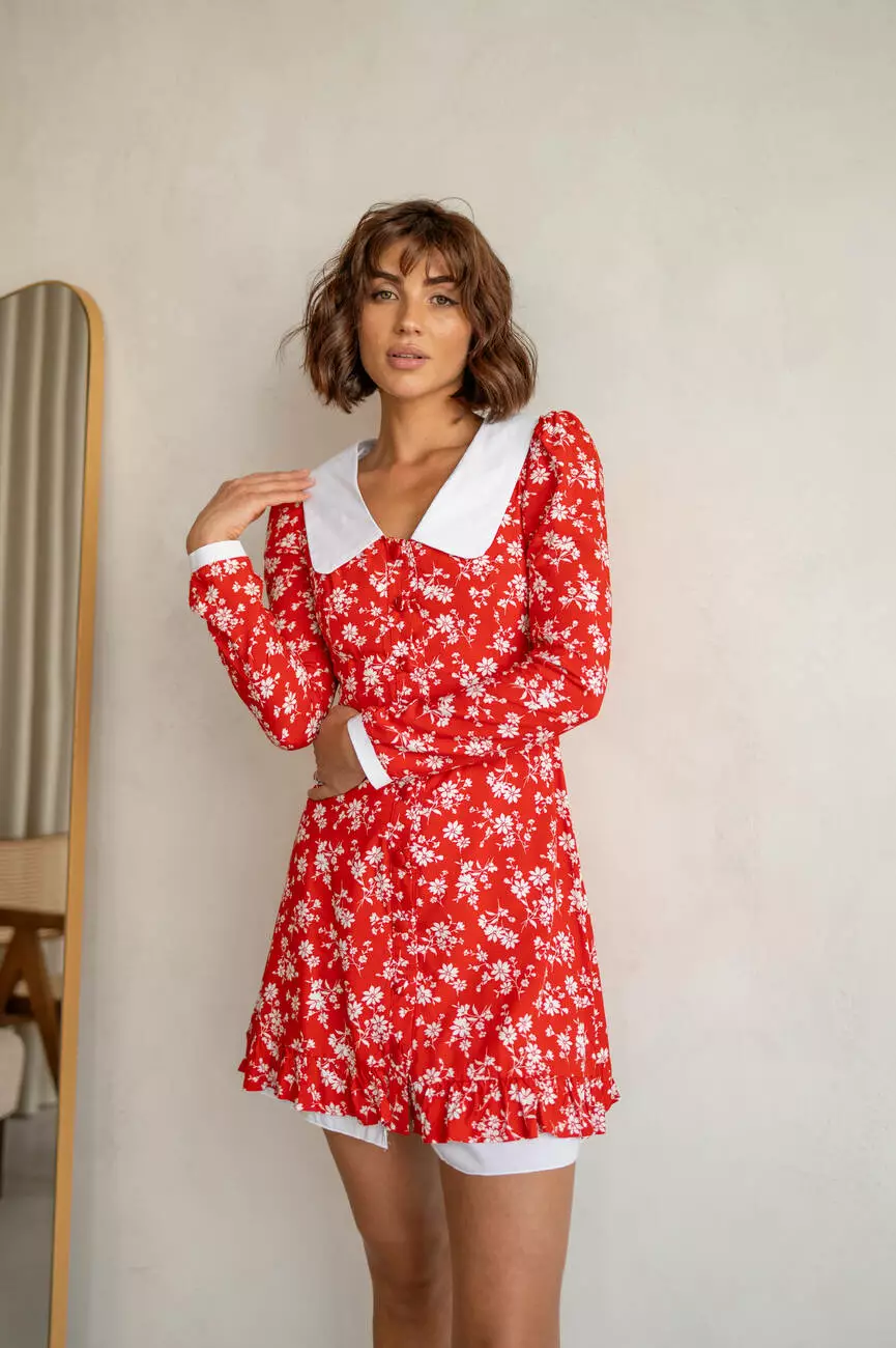 Чарівна жіноча сукня EMMA довжини міні у квітковий принт з білим комірцем червоного кольору