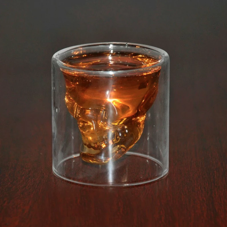 Оригінальна чарка з подвійними стінками з черепом усередині. Підходить для будь-яких алкогольних напоїв і не лише. При заповненні рідиною чарка з черепом змінюється залежно від кольору рідини всередині фігурне скло набуває форми черепа.