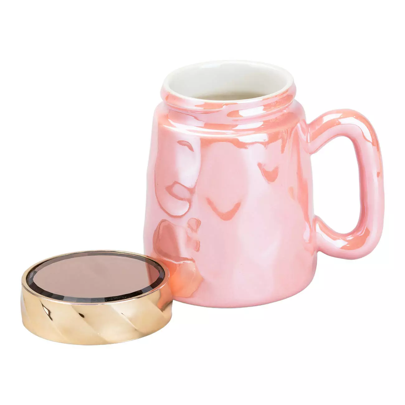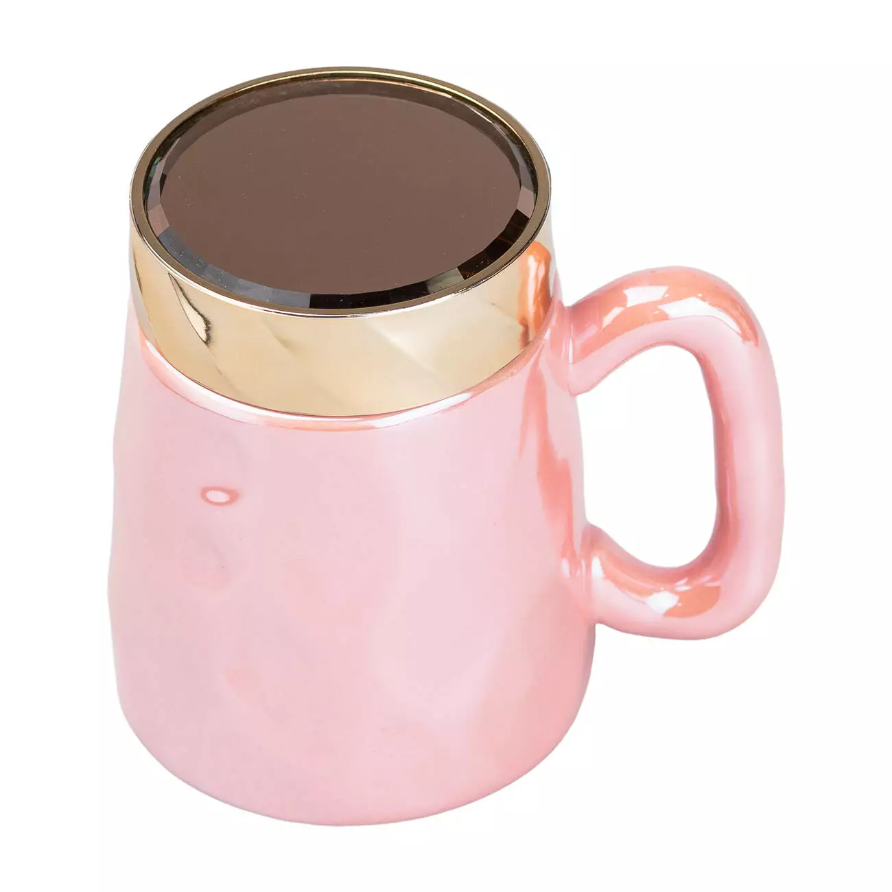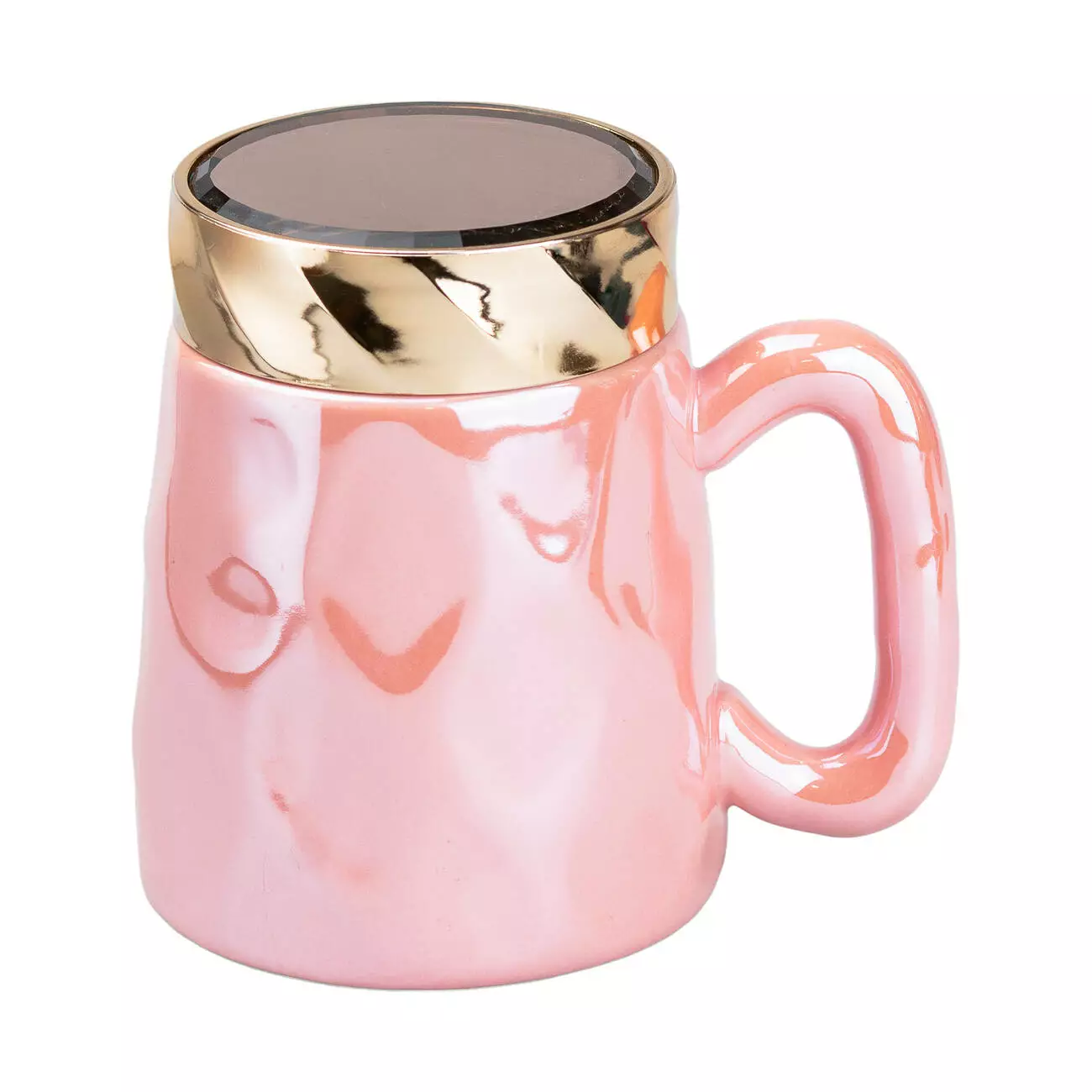 Чашка порцелянова 450 мл у дзеркальній глазурі з кришкою, рожевий