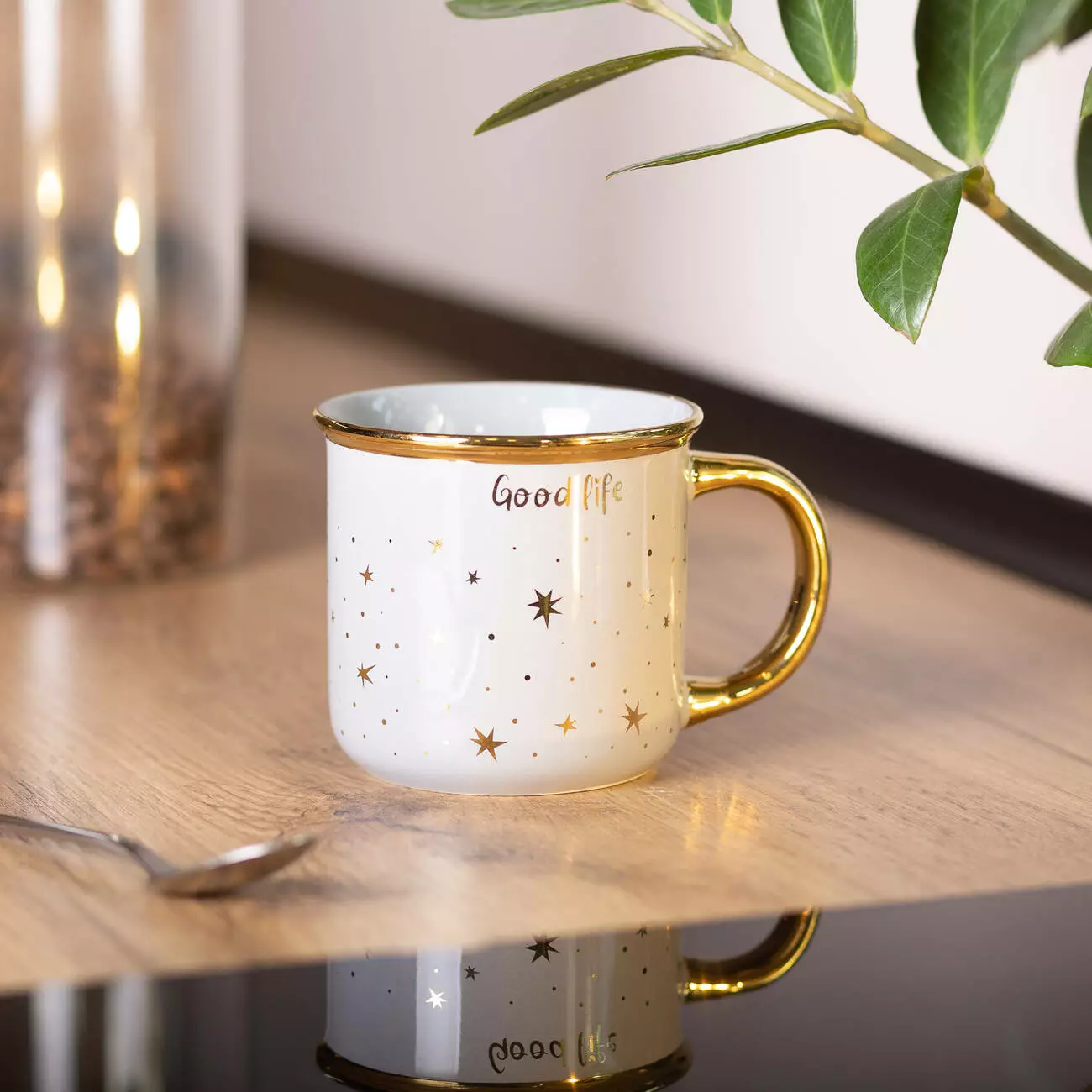 • Дизайн: напис "Good Life", золотий обідок і ручка