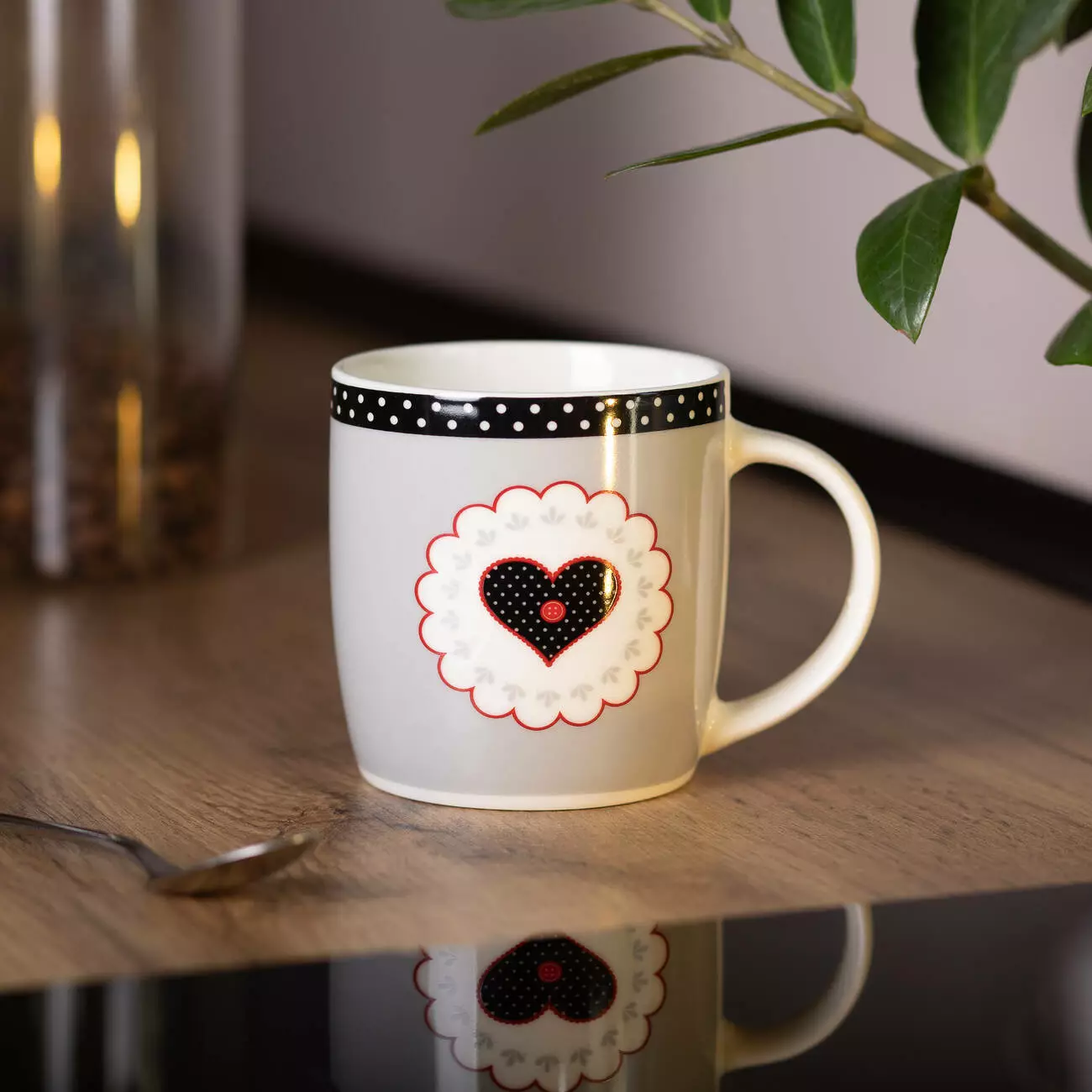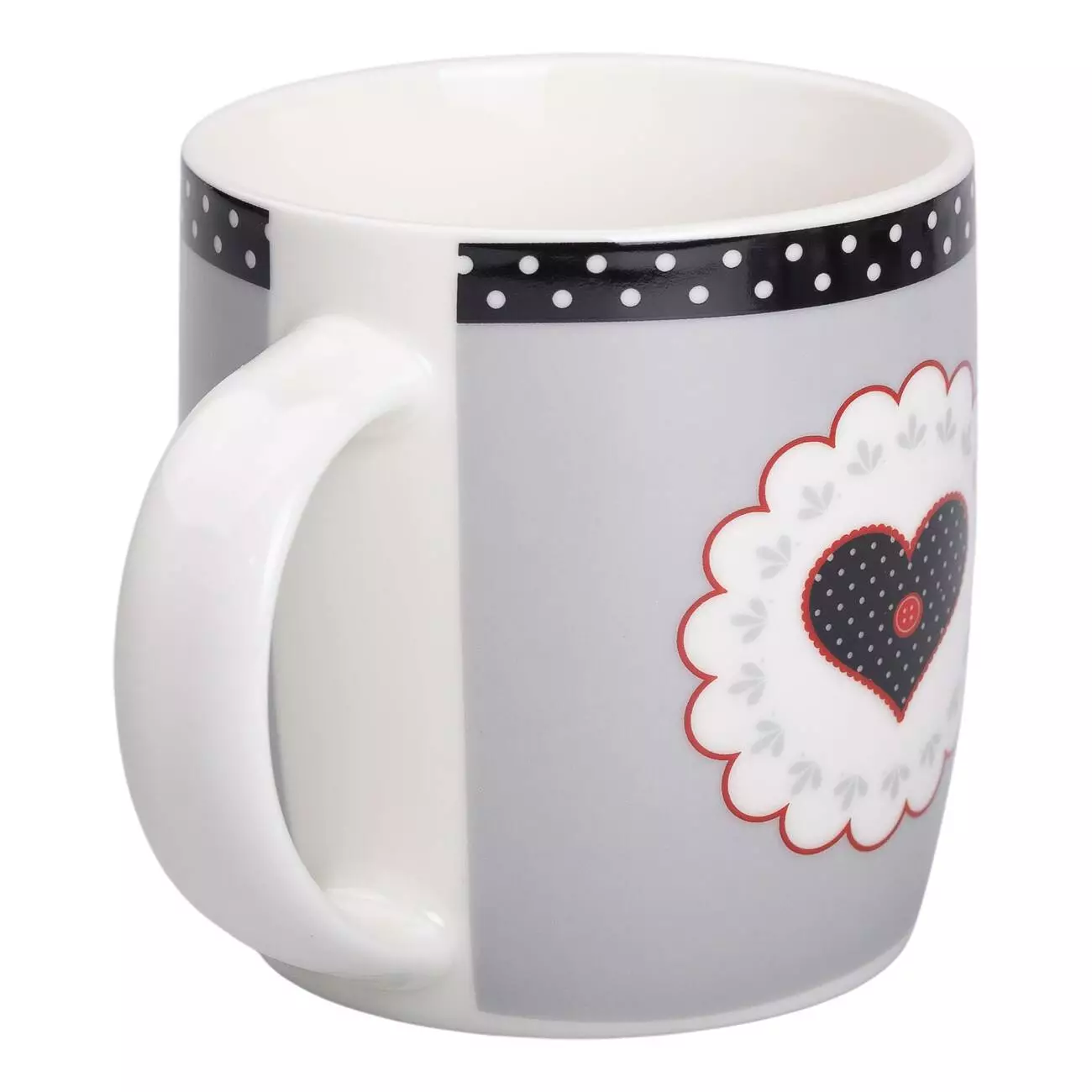 Декоративні елементи у вигляді сердечок додають чашці особливого шарму, роблячи її гарним вибором для будь-якої кухні. Виготовлена з якісного порцеляни, вона має міцну конструкцію та довговічне покриття. Важливою перевагою є можливість використання чашки в мікрохвильовій печі.