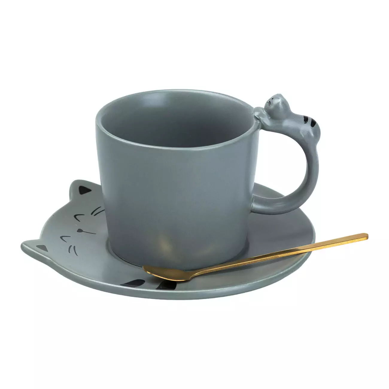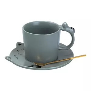 Чашка порцелянова Котики 250 мл із блюдцем та ложкою, сірий