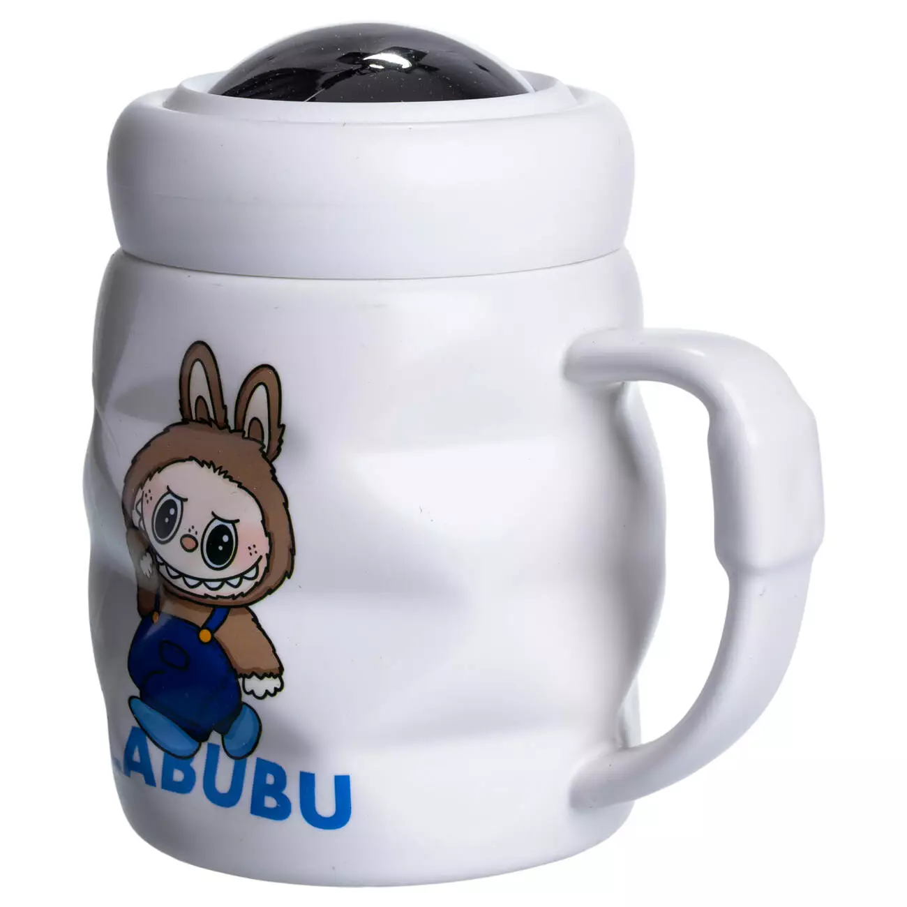 Чашка порцелянова Labubu 400 мл з кришкою, білий з синій