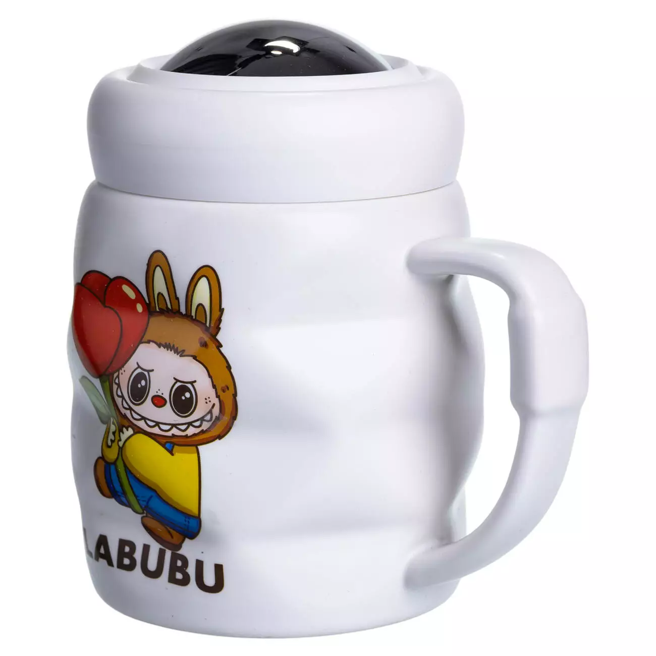 На передній частині розміщено зображення та напис LABUBU, виконаний у друкованому стилі. Цей акцент робить чашку впізнаваною і додає їй колекційного вигляду. Виріб доповнено куполоподібною кришкою з порцеляни, яка щільно прилягає до країв і допомагає зберегти температуру напою. Кришка легко знімається і проста в догляді.