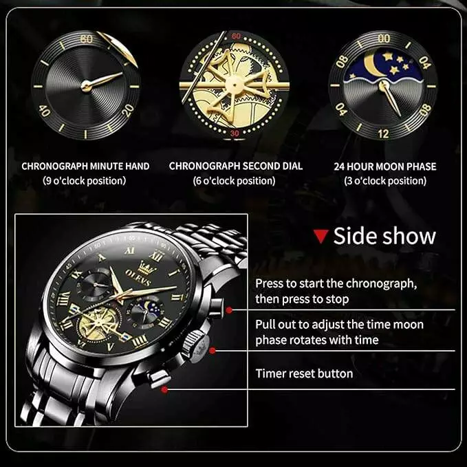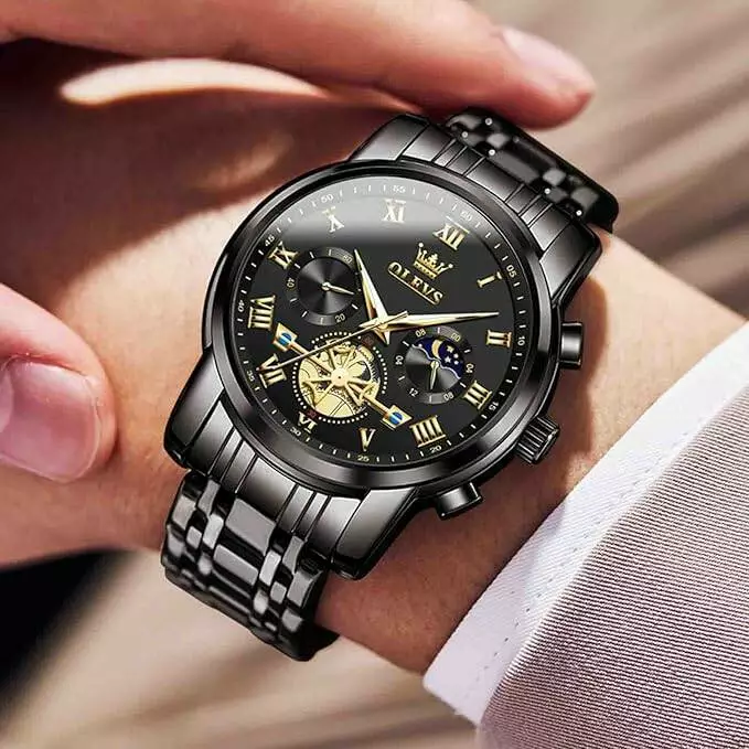 Часы наручные OLEVS 2859 – стильный аксессуар, сочетающий классическую элегантность с практичными функциями. Благодаря высокоточному кварцевому механизму часы держат точное время. Три дополнительных циферблата хронографа помогут отслеживать время с точностью до секунд, а световое покрытие на стрелках сделает чтение в темноте удобным. Корпус из сплава с вакуумным покрытием сочетается с прочным браслетом из нержавеющей стали – идеальное сочетание прочности и эстетики. Наличие водозащиты позволяет не снимать часы во время дождя или мытья рук.