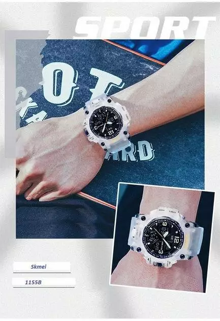 Часы наручные Skmei 1155BWT — это стильные и многофункциональные наручные часы, которые прекрасно подойдут для активных мужчин, ценящих удобство, надежность и современный дизайн. Модель сочетает классический аналоговый механизм с удобным цифровым дисплеем, благодаря чему вы получаете сразу два формата отображения времени. Часы имеют массивный пластиковый корпус белого цвета с черным циферблатом и белый мягкий ремешок из приятного на ощупь полимерного материала. Такой контраст выглядит стильно и неординарно, делая аксессуар ярким акцентом в вашем образе. Независимо от того, находитесь ли вы в городе, в спортзале или на природе — Skmei 1155BWT выглядит уместно и эффектно.