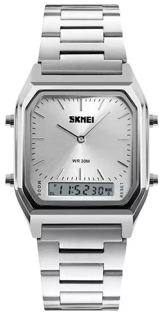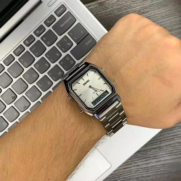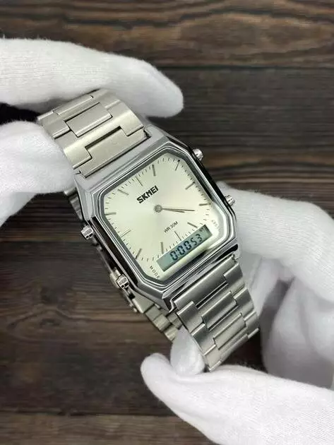 Часы наручные Skmei — это стильный мужской аксессуар, сочетающий современный дизайн, функциональность и надёжность. Лаконичный корпус и продуманные детали позволяют гармонично сочетать модель как с повседневной одеждой, так и с деловым костюмом. Прочный браслет с надёжной застёжкой обеспечивает комфорт и долговечность. Комбинированная индикация со стрелками и электронным дисплеем дополняется набором полезных функций: отображение даты, дня недели, месяца, секундомер, будильник, подсветка, второй часовой пояс и выбор 12/24-часового формата. Точный кварцевый механизм гарантирует стабильную работу, а защита от брызг делает часы удобными для ежедневного использования. Это идеальный выбор для мужчин, которые ценят стиль, комфорт и функциональность в одном аксессуаре.