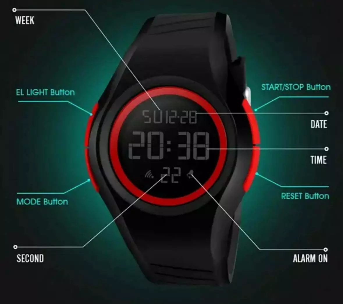 • Функции: Дата, день недели, секундомер, будильник, подсветка
