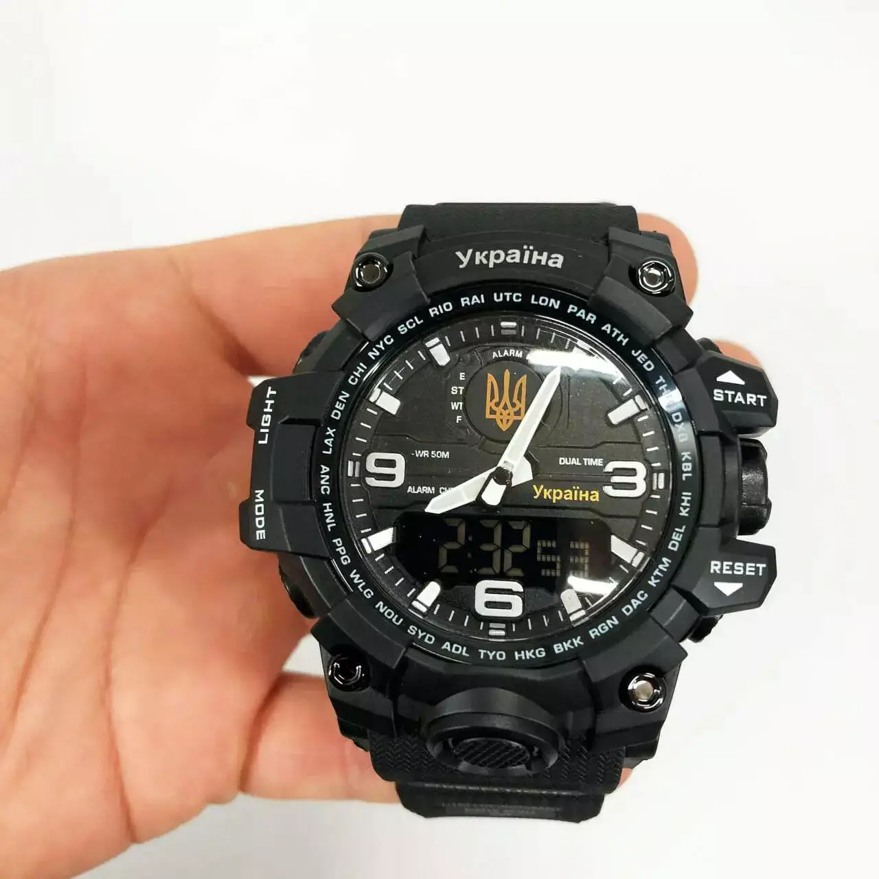 Часы наручные Skmei 1586BK Ukraine - это стильный мужской аксессуар, сочетающий в себе классический дизайн с современной функциональностью. Эти часы идеально подходят для мужчин, которые ценят точность и удобство в использовании. Подойдут как для повседневного использования, так и для деловых встреч, подчеркивая индивидуальный стиль владельца. Изготовлены из высококачественного пластика и нержавеющей стали, что обеспечивает защиту от ударов и царапин. Часы водостойкие вы сможете без боязни носить их во время плавания или дождя. Включает хронограф, будильник, таймер, световой индикатор и дату - все, что нужно для активного образа жизни. Ремешок регулируемый и легкий, идеально подходит для ежедневного использования и спортивных тренировок.