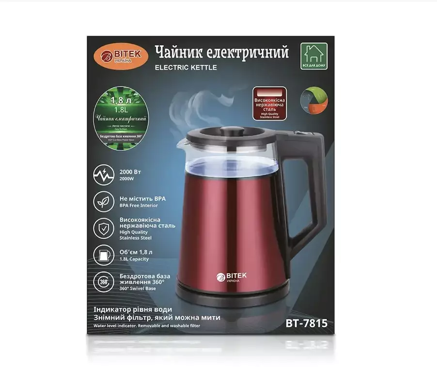 Чайник електричний 1,8л 2000Вт BITEK BT-7815/ 6664 (12)