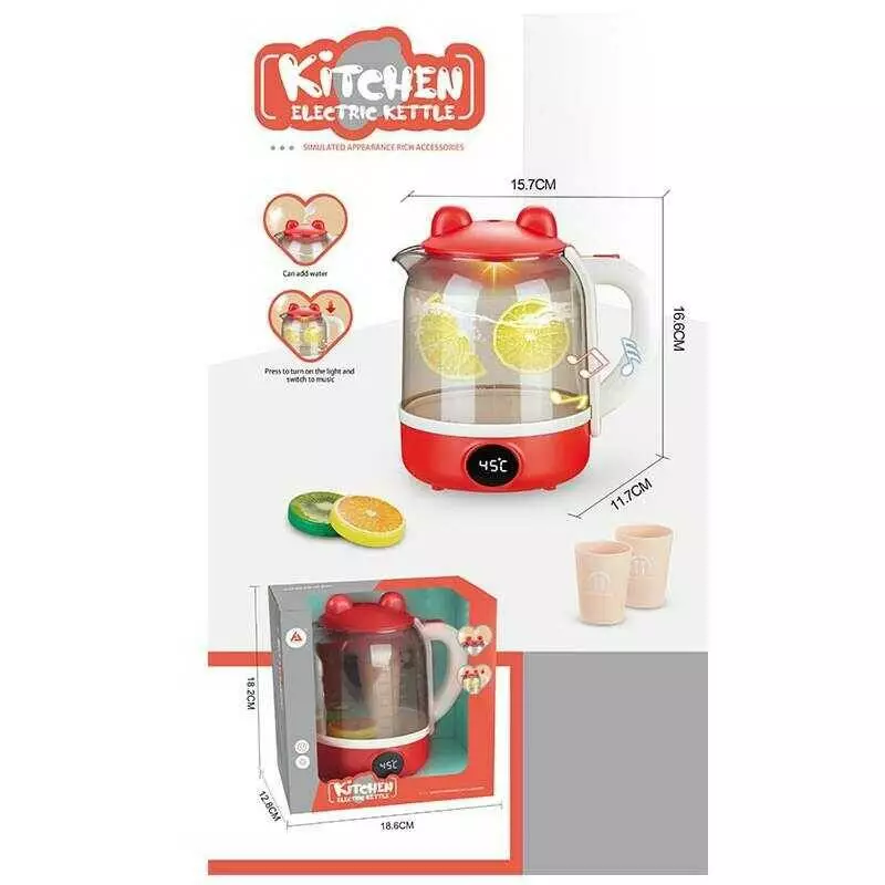 Чайник HJ 605 (48/2) на батарейках, звук, підсвічування, випускає пару, в коробці