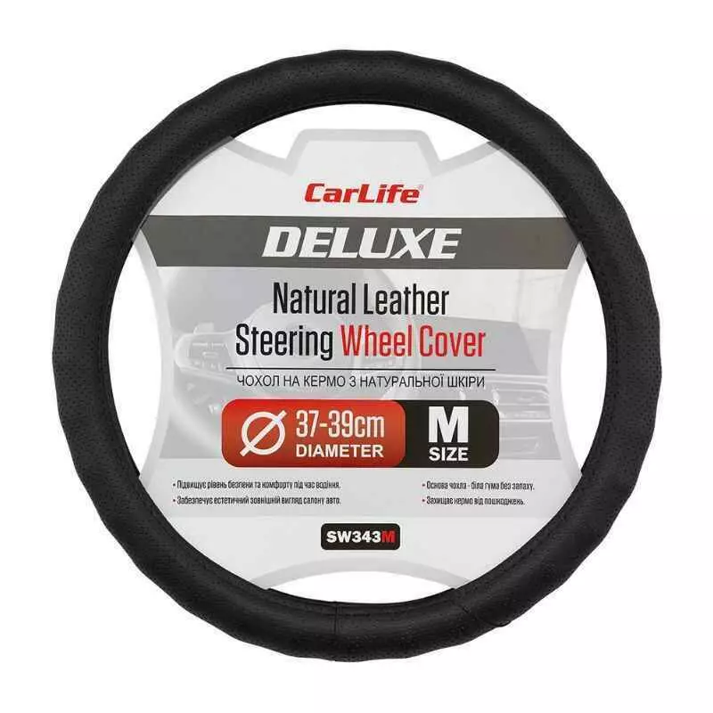 Чехол на руль Carlife 37-39см, кожа, черн, белая основа, один шов,