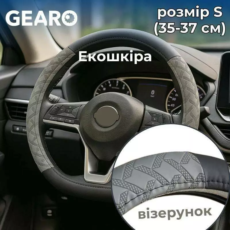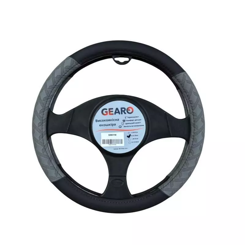 <p>Чехол на руль Gearo GE0611S из экокожи черно-серого цвета