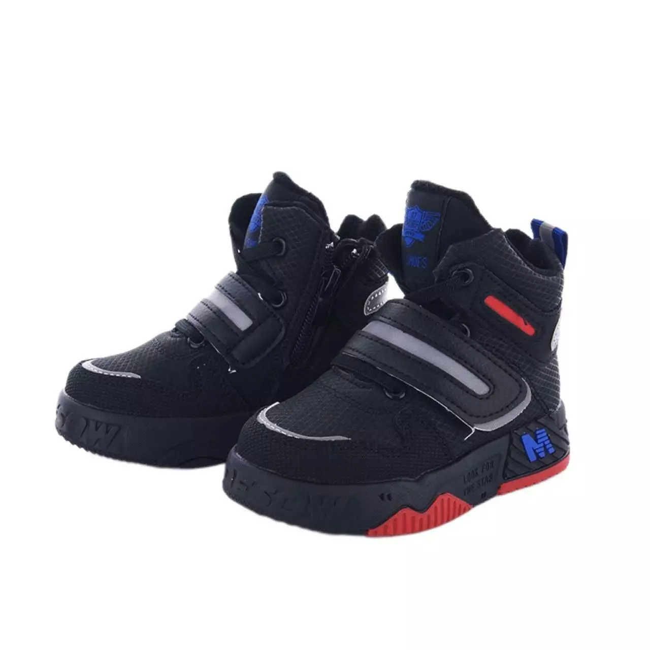 Черевики хлоп. Чорний/червоний екошкіра/фліс Р681 CLIBEE