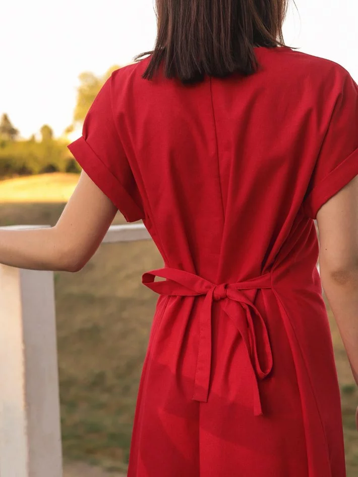 широкий цільнокроєний рукав. У боки вшитий поясок з обох боків для