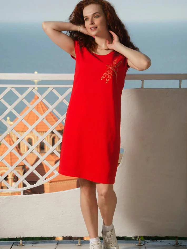 Лляна сукня довжини трохи нижче коліна, прямого силуету, без