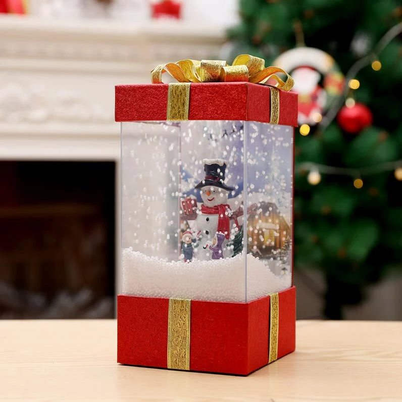 Червоний сніговий фонтан RESTEQ. Декоративний ліхтар із ефектом снігопаду, підсвічуванням та музикою Сніговик, світло тепле