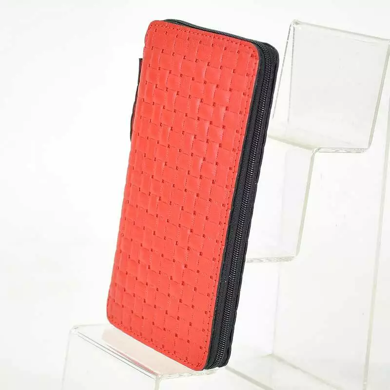 Чохол-сумочка шиється зі шкіри із тисненням ефекту плетіння.