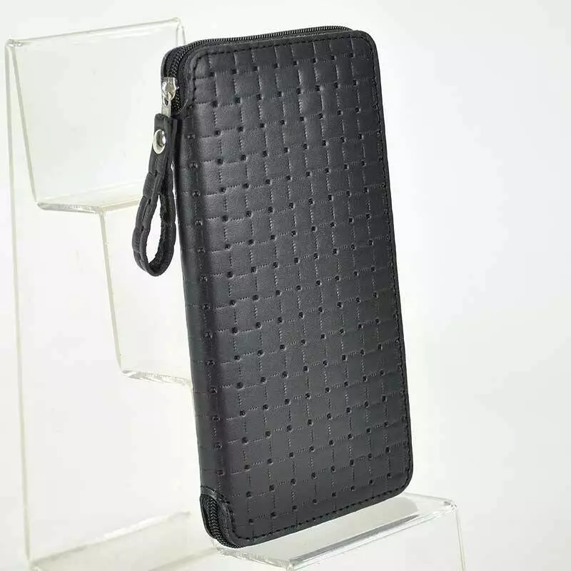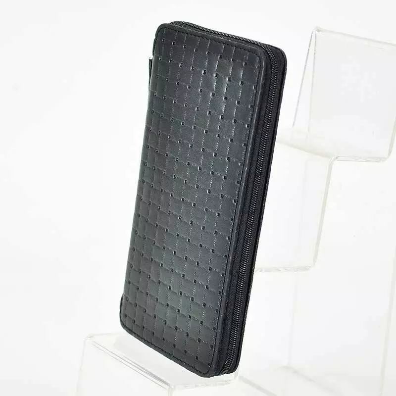 Чохол-сумочка шиється зі шкіри із тисненням ефекту плетіння.
