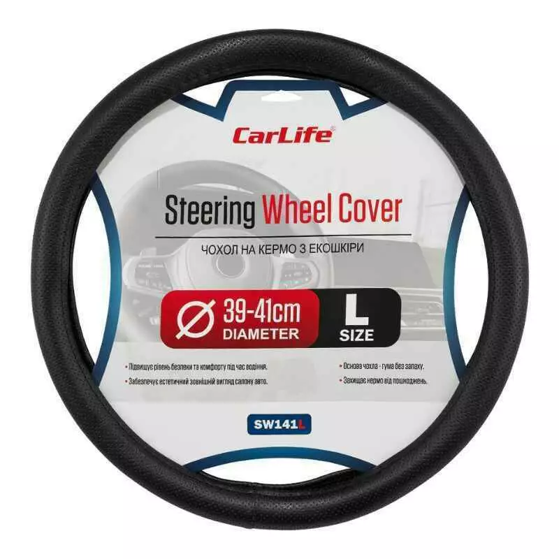 Чохол на кермо Carlife 39 - 41см, екошкіра, чорний, один шов,
