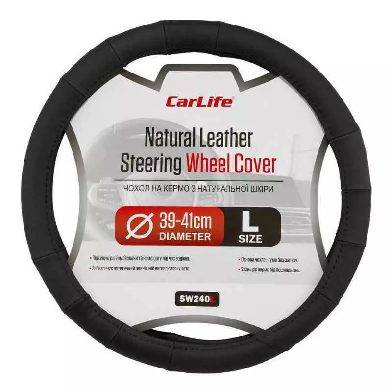 Чохол на кермо Carlife 39 - 41см, шкіра, чорний (SW240L)