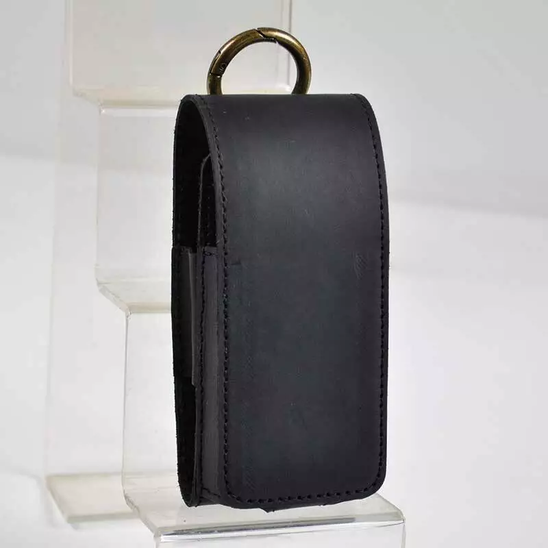 Чохол оснащений кільцем-карабіном, за допомогою якого можна зафіксувати шкіряний виріб на пояс, ручку або ремінь сумки.
