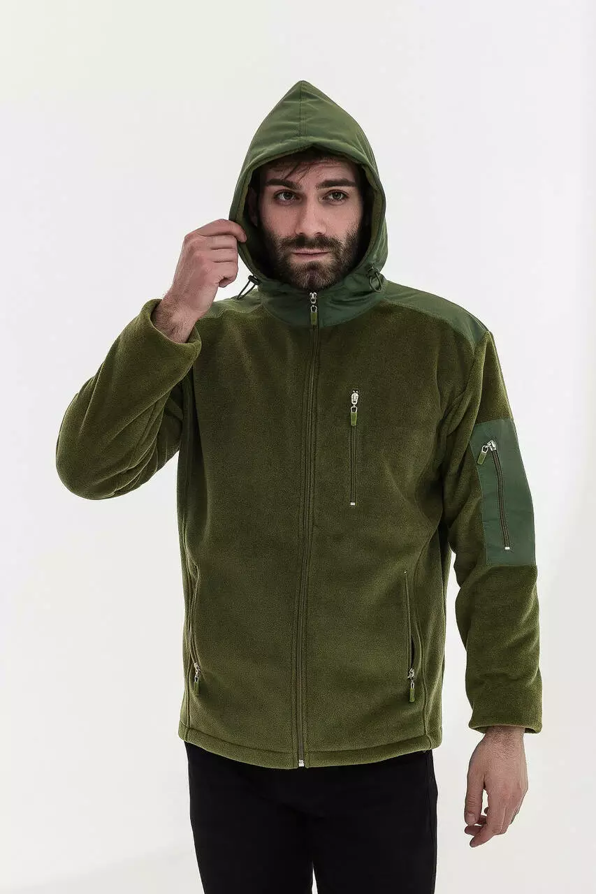 Кофта з високоякісного флісу турецького виробництва з щільністю 270 г/м² - ідеальний вибір для збереження тепла в холодний період. Завдяки двом кишеням, капюшону з фіксаторами манжетам на резинці вона надійно захищає від вітру і холоду.