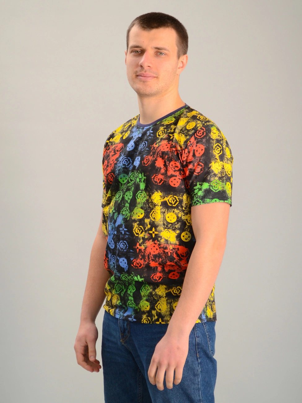 Чоловіча футболка в принт чорна, Ростовка (5 шт)