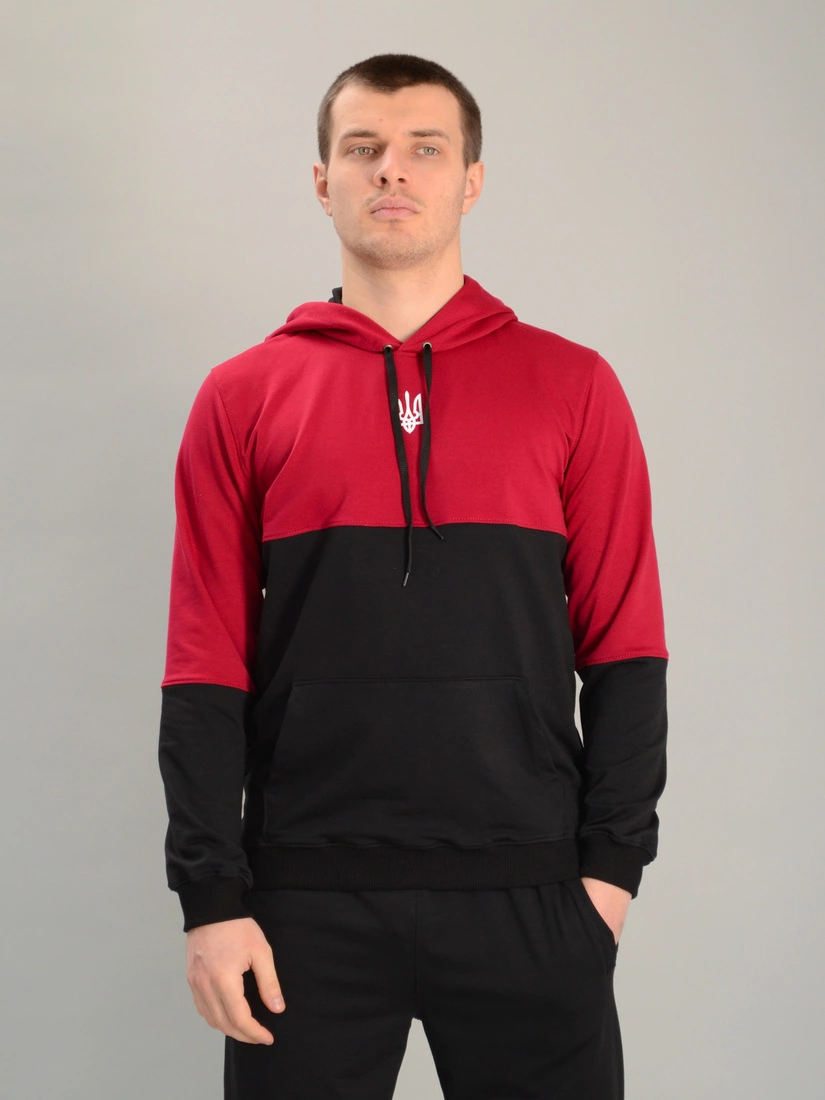 Чоловіча спортивна двоколірна кофта-кенгуру gerb бордово-чорна, Ростовка (4 шт)