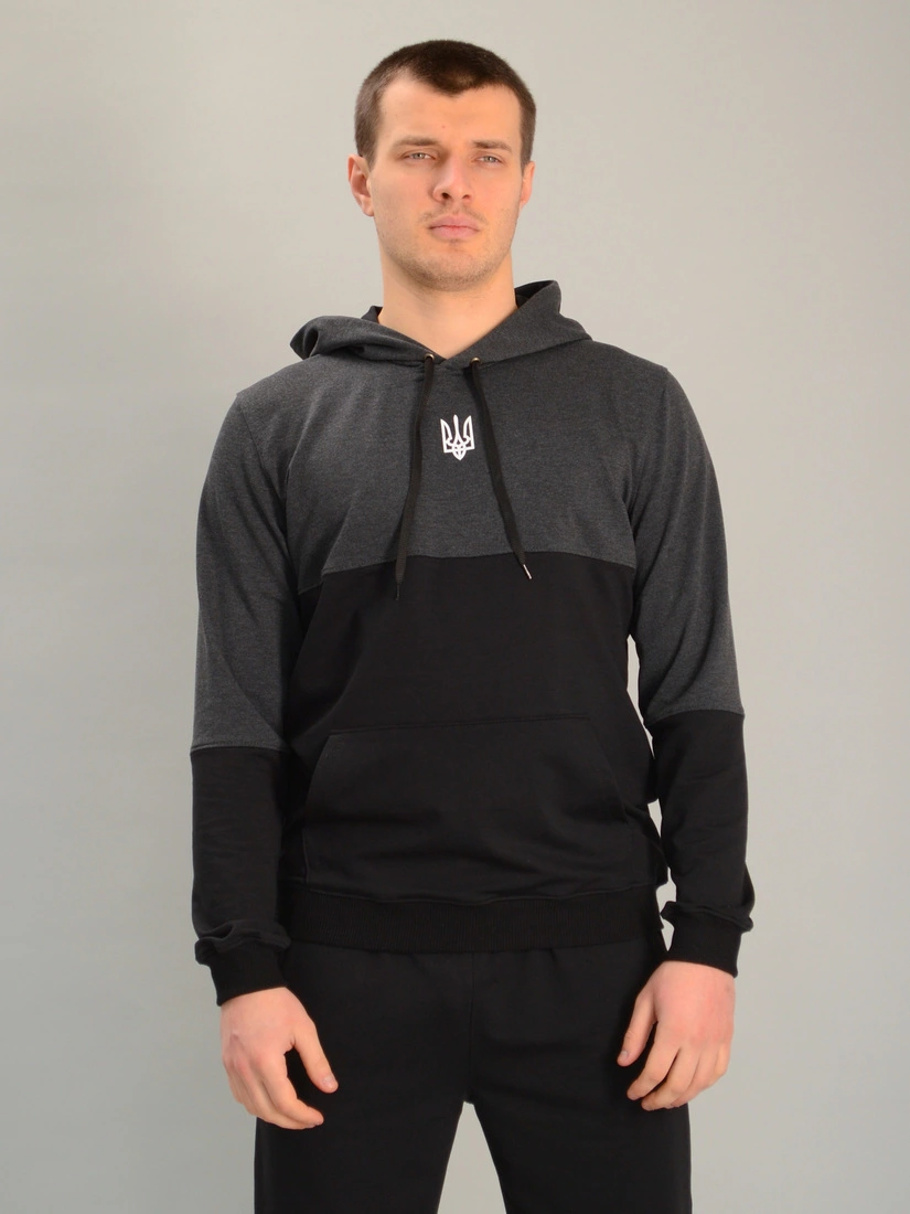 Чоловіча спортивна двоколірна кофта-кенгуру gerb антрацитово-чорна, Ростовка (4 шт)