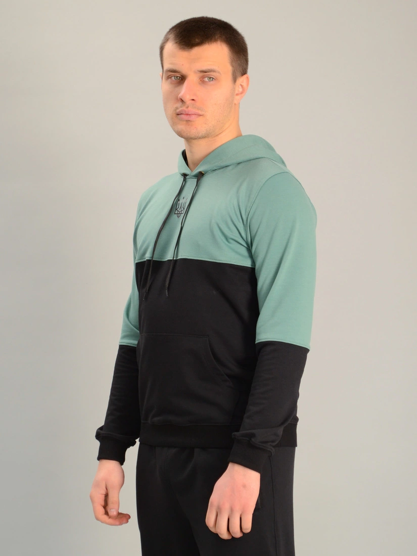 Чоловіча спортивна двоколірна кофта-кенгуру gerb м'ятно-чорна, Ростовка (4 шт)