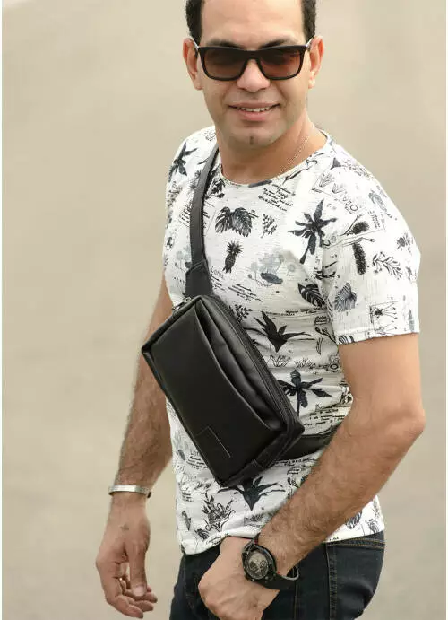 Вместительная и практичная сумка бананка с экокожи -