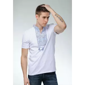 Чоловіча вишиванка на короткий рукав білого кольору «Король Данило (синя вишивка)»