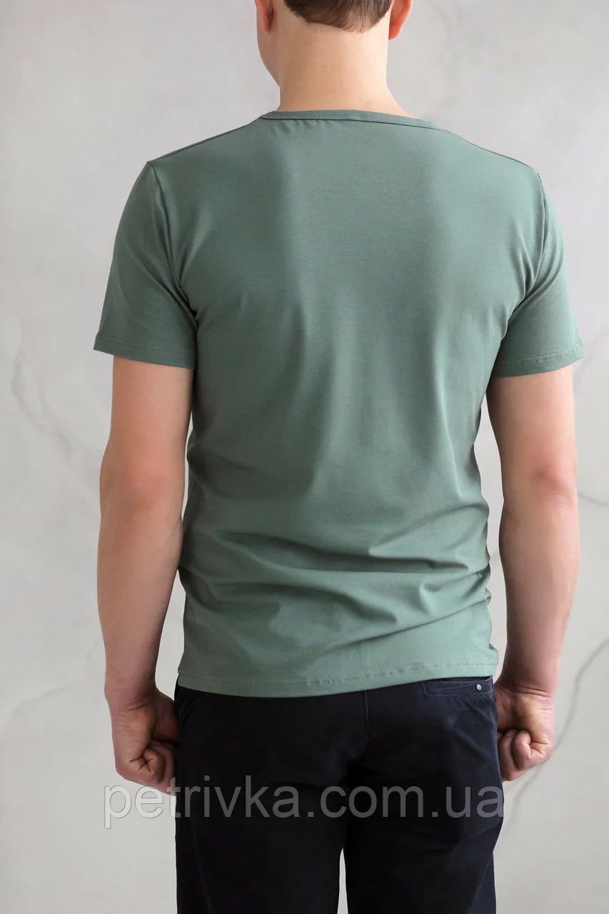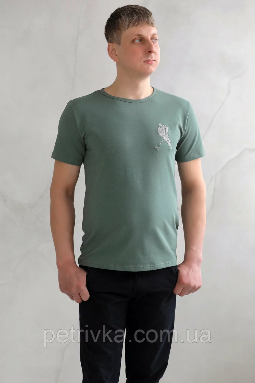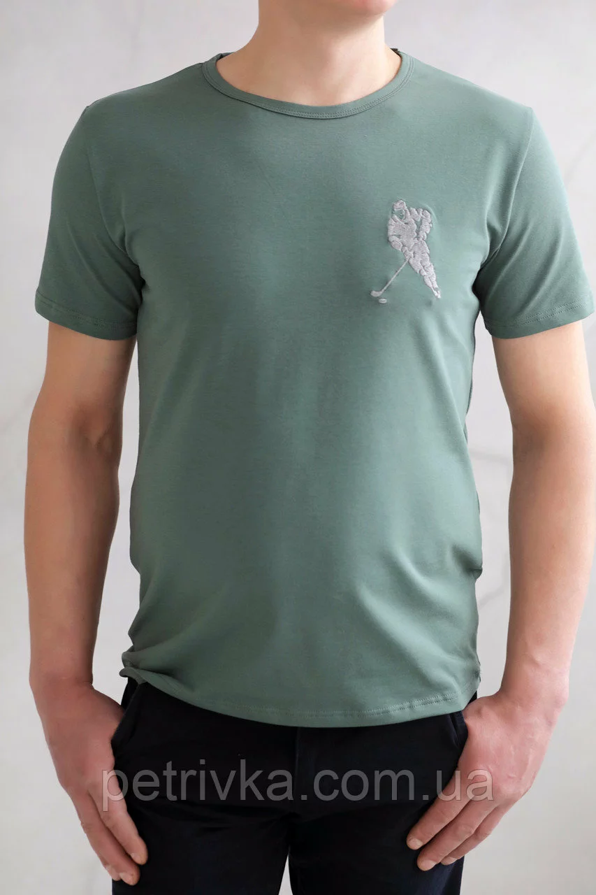 Чоловіча футболка зелена з вишитим принтом Лев, висока якість,